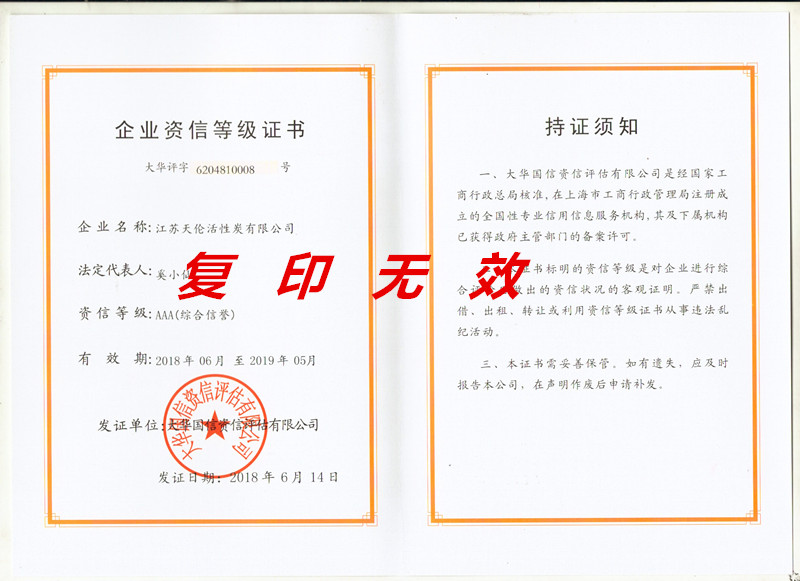企業(yè)信用等級證書