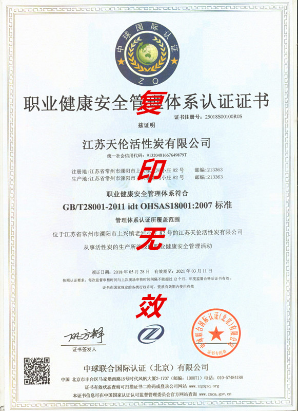 職業(yè)健康安全管理體系認(rèn)證證書